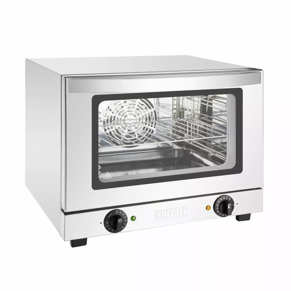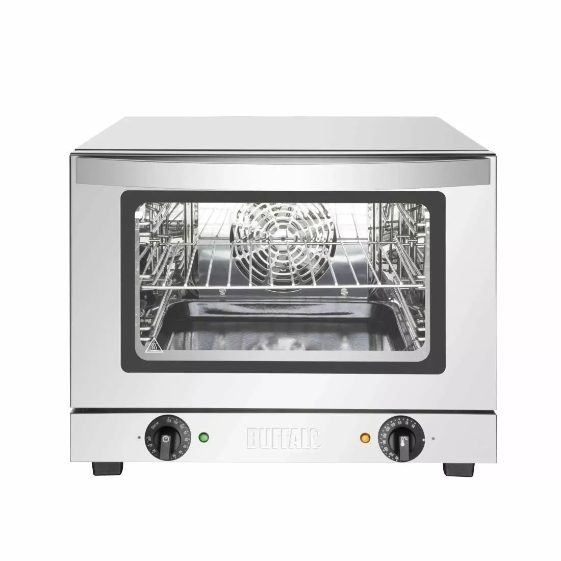 For reliable and consistent cooking in kitchens where space is at a premium, choose this 21Ltr Buffalo convection oven. With a generous 21 litres of storage and measuring just 510mm wide, this Buffalo convection oven can accommodate up to 3 x 1/2 GN pans without taking up too much of your valuable kitchen space. This means you’ll still be able to meet customer demand for a range of dishes, while also having more flexibility with your limited countertop space.