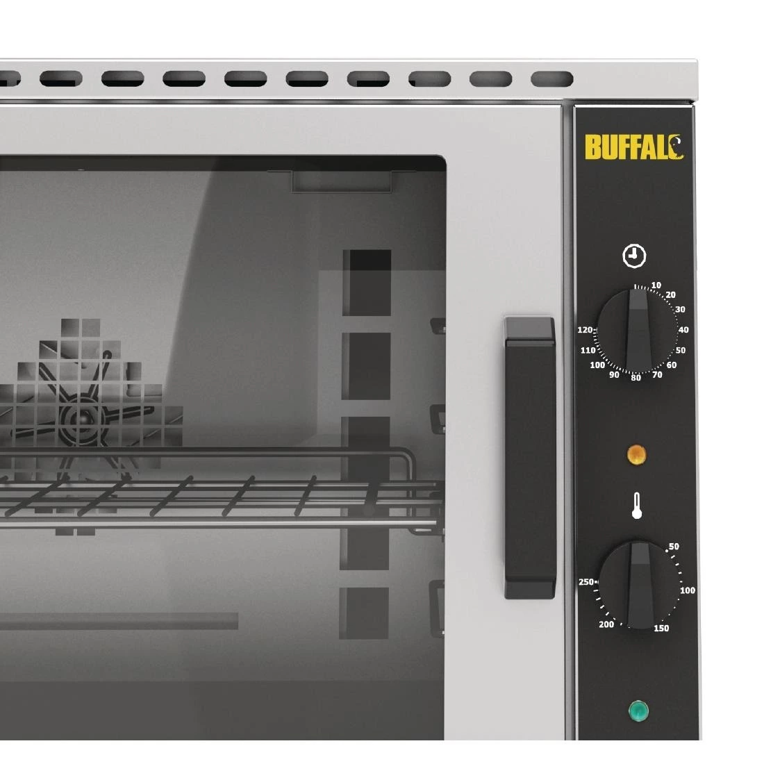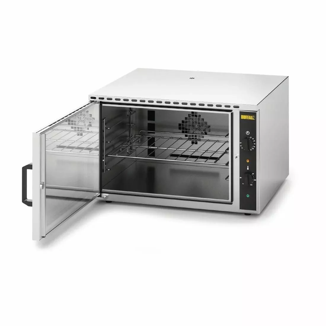 Whether you’re baking bread, pastries or potatoes, the UK-made Buffalo 50Ltr convection oven is a powerful and reliable oven which delivers consistent results every time. With a compact, stylish design and simple controls, the oven is easy to use and great for kitchens with limited space. The double glazed door is robust and helps to reduce heat loss – perfect for reducing running costs.