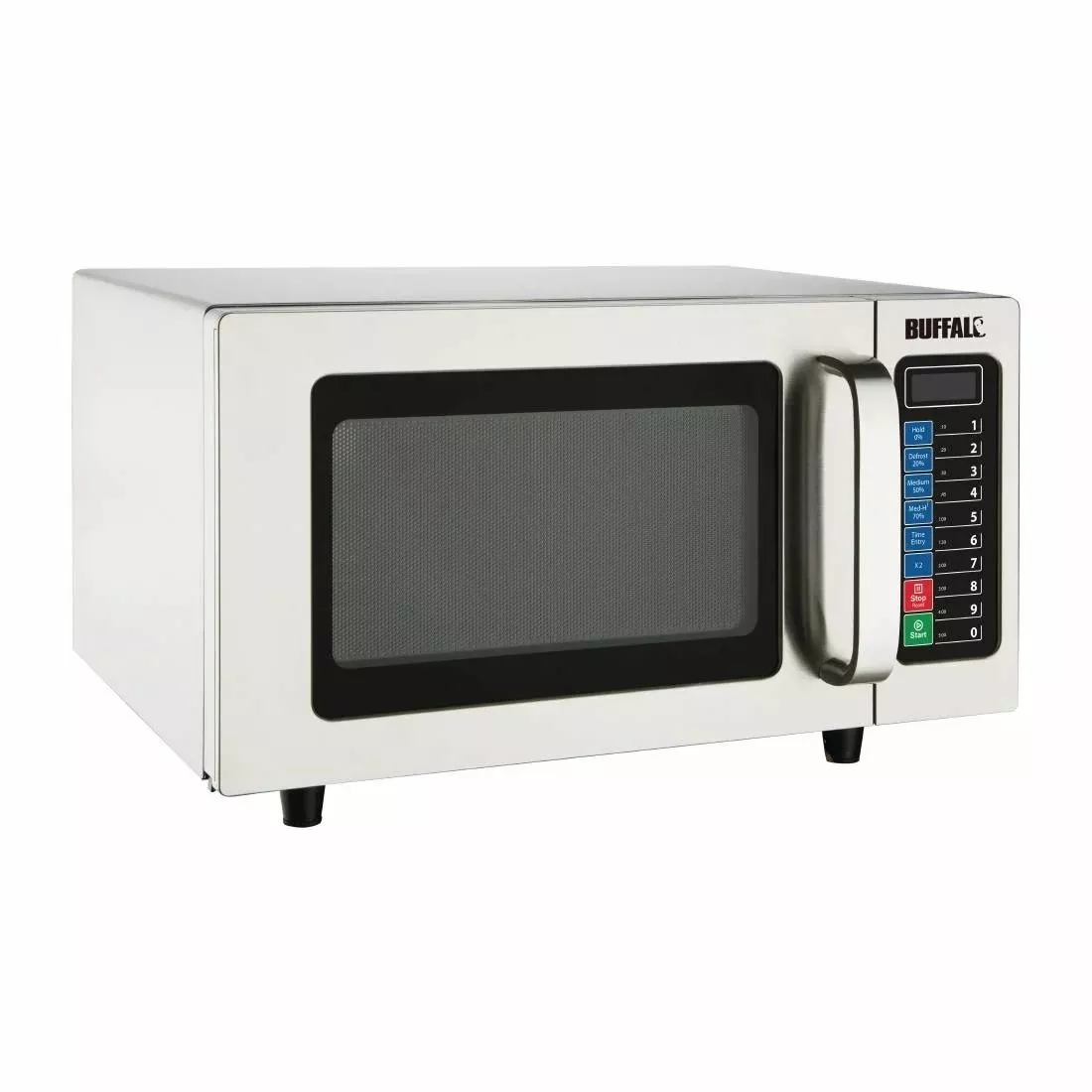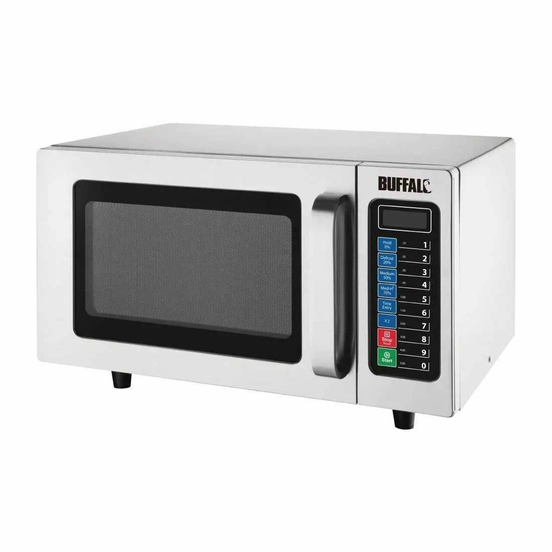 Speed up your cooking, reheating or defrosting with the powerful and efficient Buffalo programmable commercial microwave oven. Designed for durability and performance, the microwave features 1000W of power output for rapid cooking and a strong, easy-clean stainless steel build. The digital controls make the oven quick and easy to use, with one-touch access to multi-stage cooking. The internal 25 litre capacity allows multiple portions to be cooking simultaneously. The handy X2 function is a great way to automatically modify programme times if you’re microwaving two dishes at a time. Perfect for smaller kitchens.