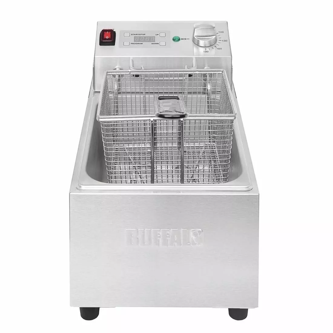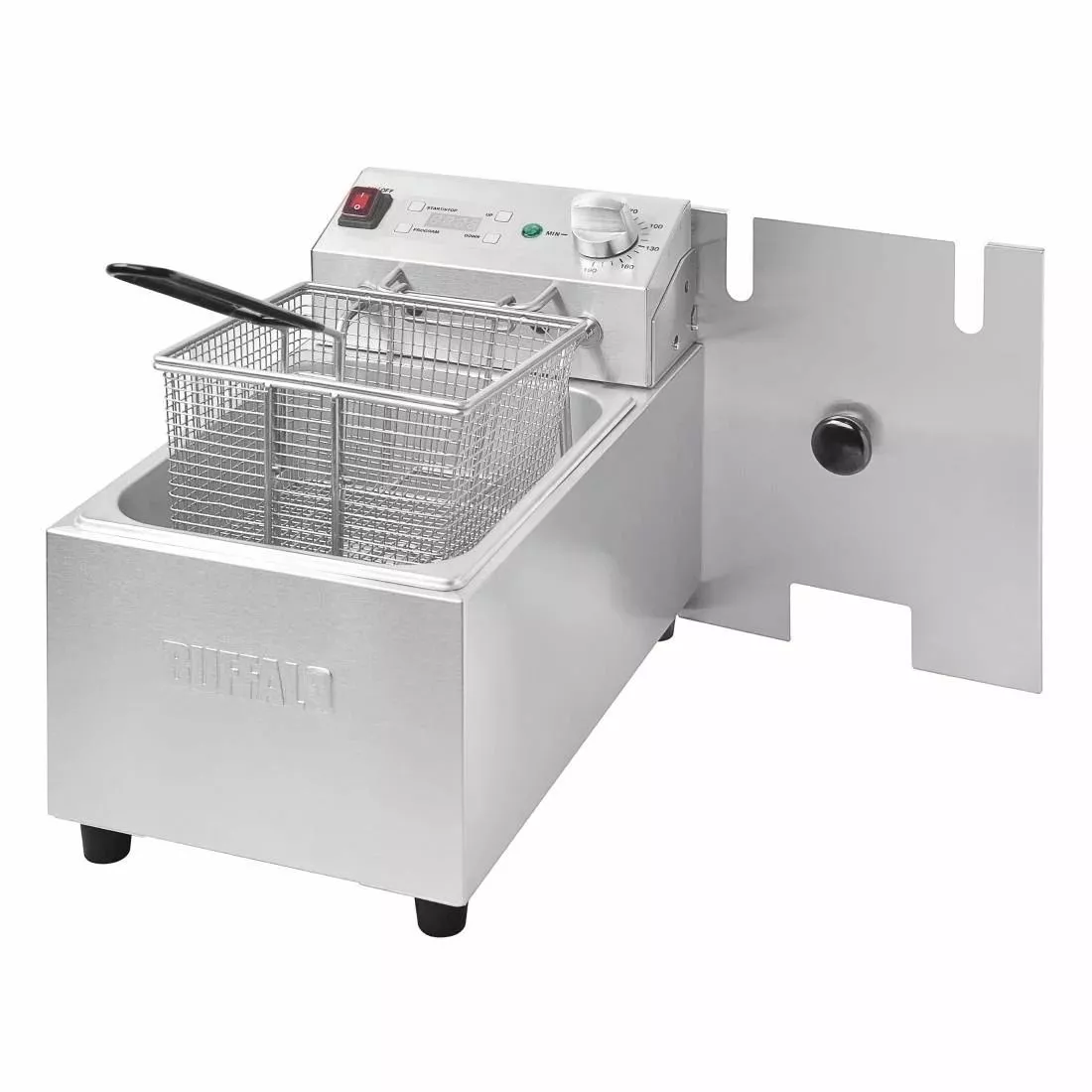Whether you’re frying fish or French fries, the Buffalo countertop fryer is the ideal solution for heavy duty, everyday use. With a powerful 2.8kW element and robust stainless steel construction throughout, the Buffalo is a reliable addition to restaurants, cafÍ©s, kiosks alike. The built-in dial temperature control and digital timer ensures you can cook food just how your customers want it – deliciously crispy and golden.