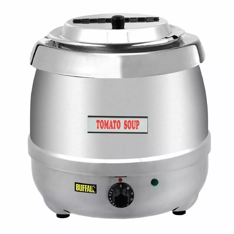 With exceptional features such as a robust yet easy to clean stainless steel finish and a hinged lid for easy serving, the great value for money Buffalo Stainless Steel Soup Kettle is suitable for all kinds of catering establishments. With a large 10 litre capacity, this soup kettle is perfect for serving soups and stews at your desired temperature whilst also working well in merchandising your diverse menu to the customer.