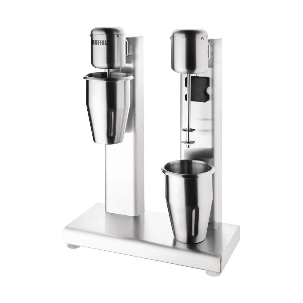 With independently controlled mixing heads, the Buffalo milkshake mixer is a highly flexible solution for sites where multiple drinks are mixed at the same time. As each head has a powerful two-speed 80W motor, you get the performance and versatility to mix cocktails and milkshakes without fuss or mess. The highly sturdy stainless steel construction makes the unit strong, easy to clean and great for any front of house. Supplied with two stainless steel malt cups.