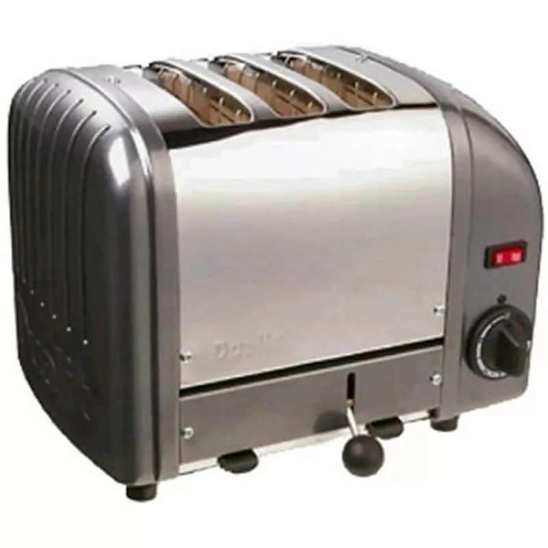 The exceptionally stylish Dualit 3 Slice Vario Toaster Black is specifically designed for use in the commercial kitchen. Three extra wide 28mm slots allow a variety of bread to be toasted, from thick slices from a loaf to buns, teacakes and bagels. The slots are also wide enough to accommodate a Dualit sandwich cage (available separately) for making hot toasted sandwiches. The toaster is highly versatile thanks to several innovative features, of which include a high lift mechanism for removing small items safely, a mechanical timer to control toasting, a selector switch to use only the slots required and a manually operated ejector lever to keep items warm until needed.