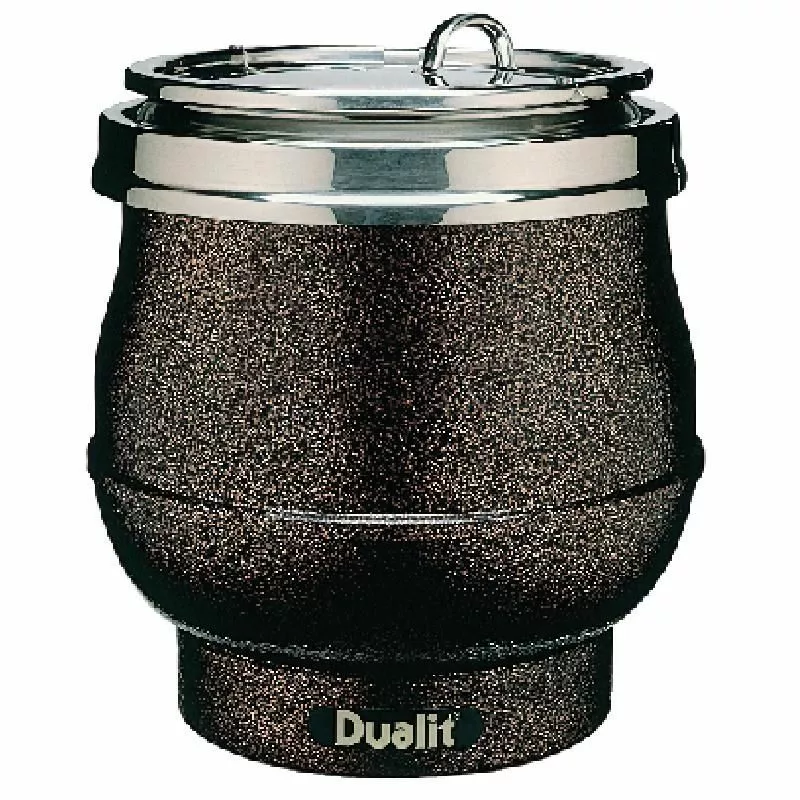 Holding up to 11 litres of the day’s soup, chilli, curry, mulled wine and other foods, this Dualit Hotpot Soup Kettle provides a simple comprehensive storage solution for your hot meals. With an interesting rustic brown finish that catches the eye, this soup warmer is light enough to transport with relative ease making it suitable for all styles of catering from mobile to static. With a failsafe override system in place should your batch boil dry, you and your staff will not have the hassle of monitoring the unit during operation and can concentrate on other kitchen duties once the soup urn is filled.