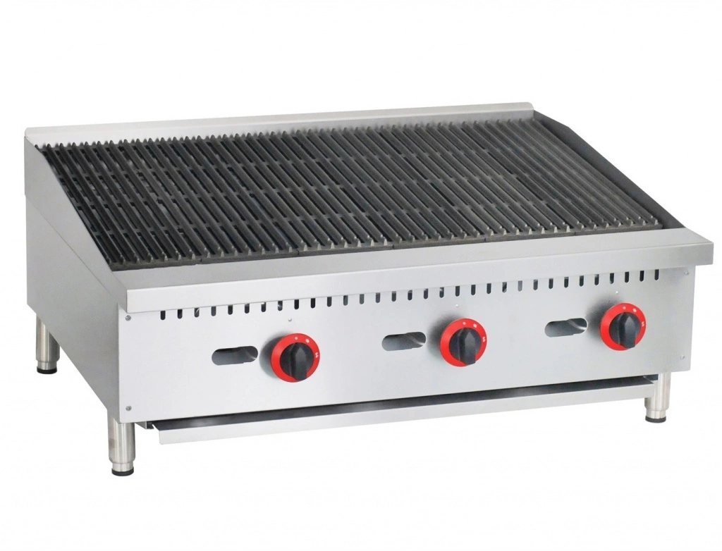 Designed to deliver that authentic chargrilled taste and branded appearance while maximising output this Empire triple burner gas chargrill is a heavy duty machine for fast-paced commercial outlets. Innovative cooking technology offer an energy-saving versatile option that can handle varying outputs. The large waterless fat collection drawer make tedious cleaning that much more efficient.