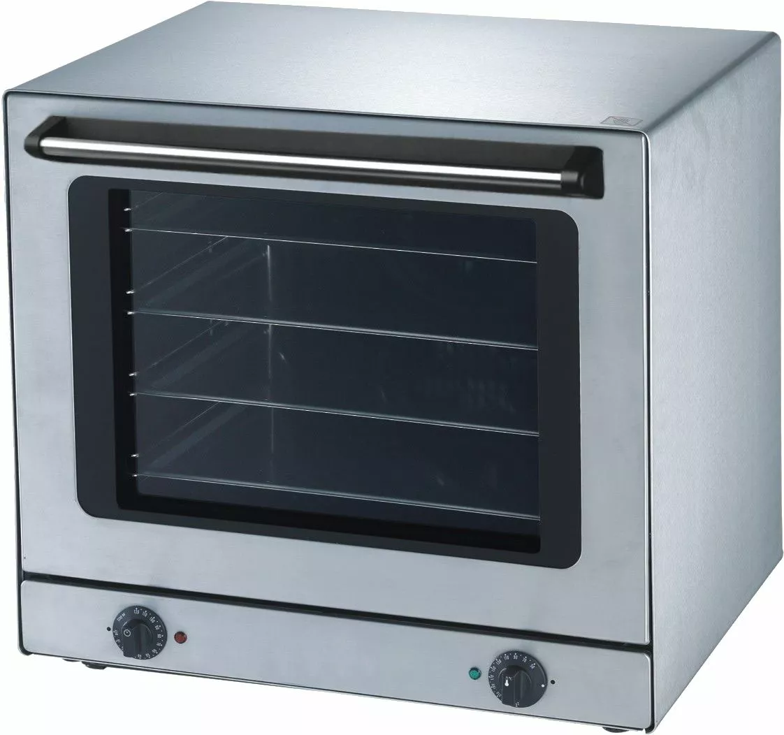 This Empire fan driven or fan-assisted rear convection oven circulates air evenly around food, allowing food to be cooked more evenly in a shorter time and at lower temperatures. In a commercial setting convection ovens are desirable chiefly because of their ability to cook very high quality food at speed, especially important for restaurants who wish to turn tables around quickly without compromising on quality.
