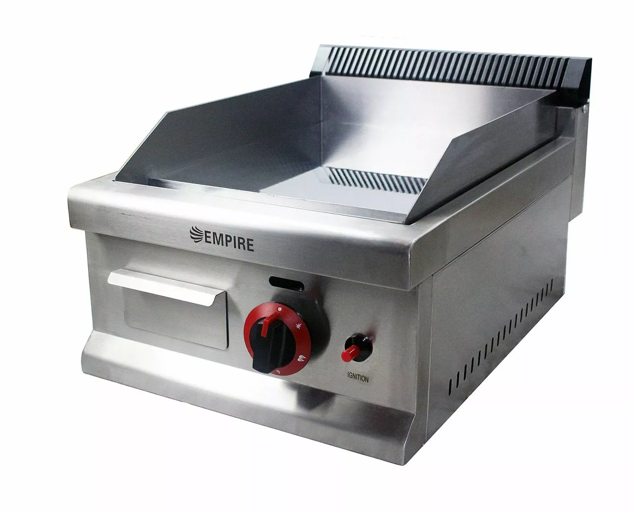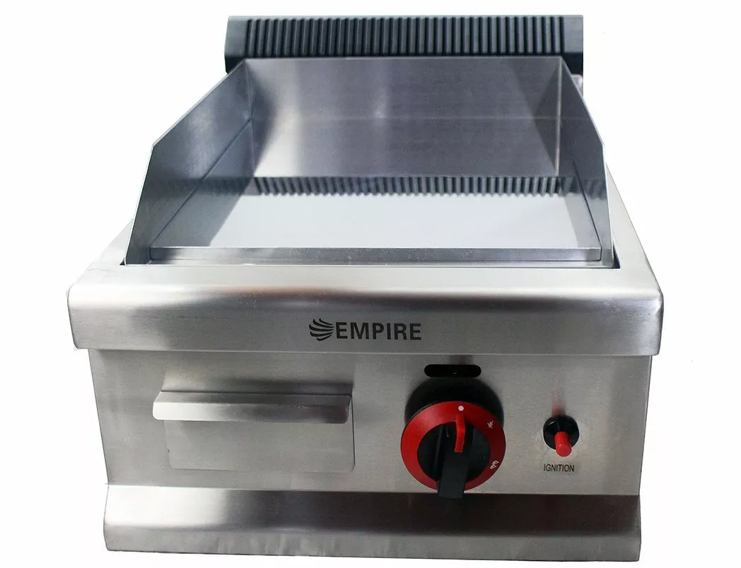 It is specifically designed to allow effective heat flow across the surface and maintain temperatures throughout cooking. It comes as standard with a 12mm thick smooth flat chrome plated cooking area of 346 x 398mm, side and rear splashback with a removable grease trough for easy cleaning.