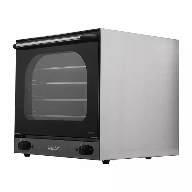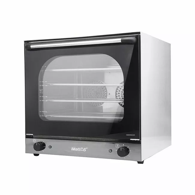 The iMettos Convection Oven is ideal for baking, cooking, reheating and warming with twin fan motors. This has a stainless steel exterior and a stainless steel interior cavity. The oven has a removable double glazed door and removable racks for easy cleaning.