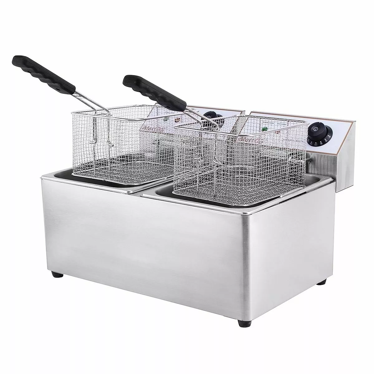 Twin tank deep fat fryers (sometimes called double tank fryers) are the ideal solution for cooking different types of foods at the same time. The separate tanks mean you can cater for all types of menus at once – meat, vegetarian and vegan. It also allows for different oil types and cooking temperatures to be used at the same time. So whether you are frying chips, doughnuts, fish or chicken a twin tank fryer is an excellent commercial choice.