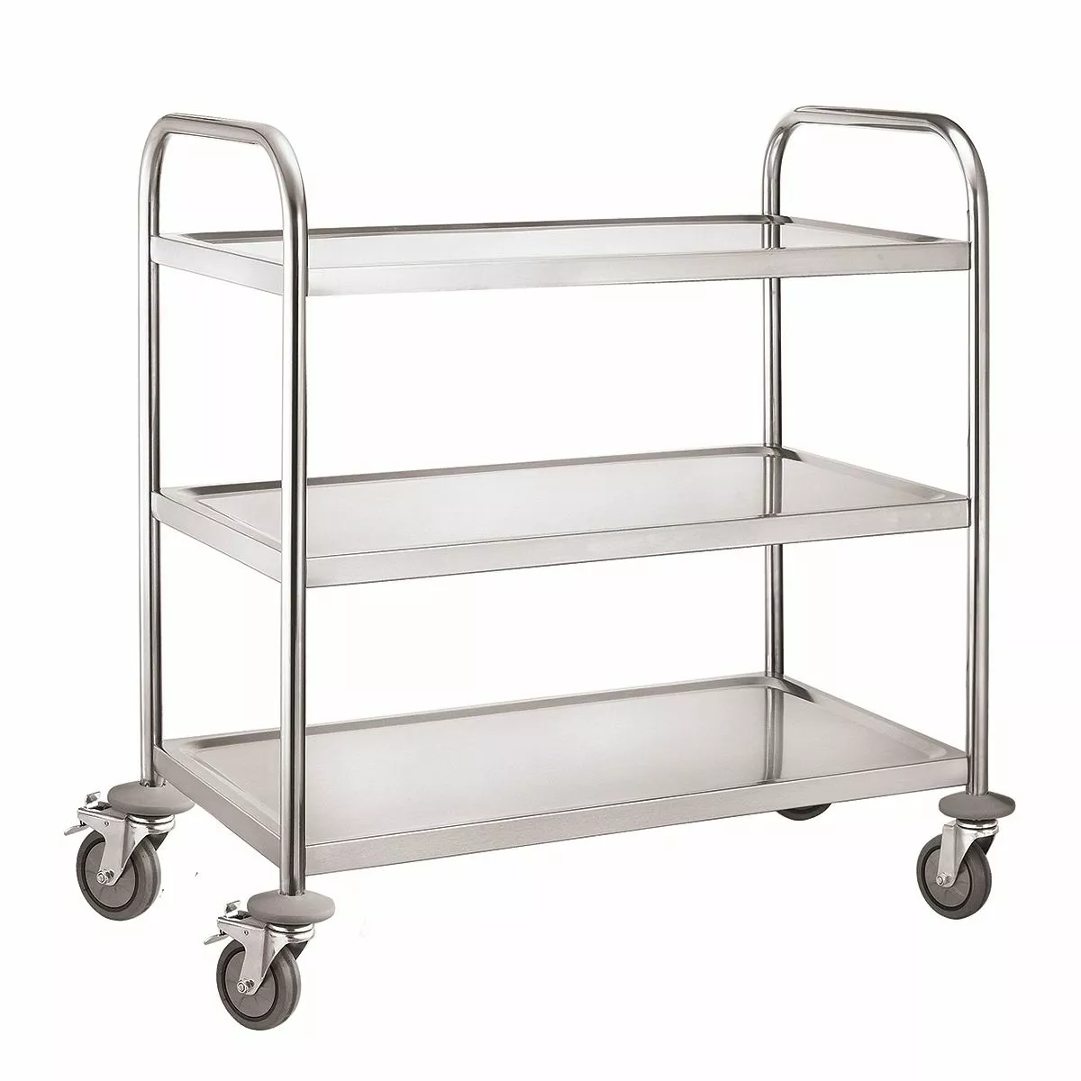 The iMettos Serving Trolley is made of stainless Steel. Stainless steel 3 tier serving trolley, ideal for many applications.