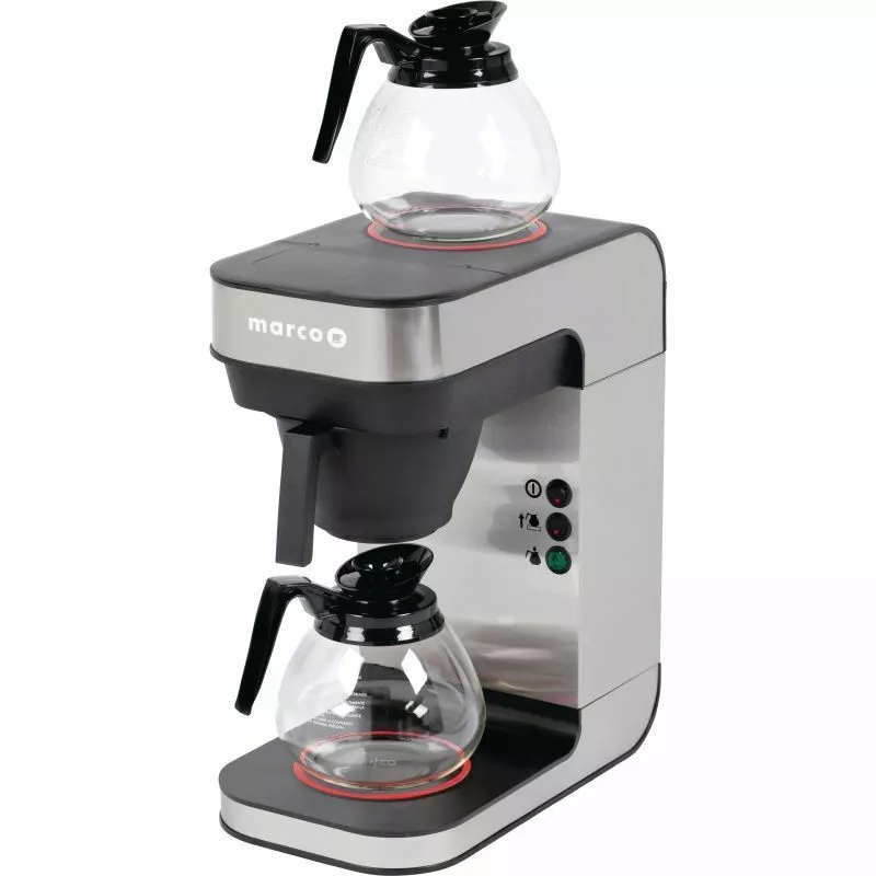 Simple to set up and perfect for a wide variety of catering locations, from coffee shops and cafes, all the way to canteens, conferences and offices, the stylish, modern Marco 1.8Ltr BRU Manual Fill Coffee Brewer F45M enables you to brew high quality, aromatic coffee. It is also exceptionally user friendly thanks to an easy clean design, whilst the manual fill feature means that no additional pluming needs to be arranged for installation. Supplied with two jugs.