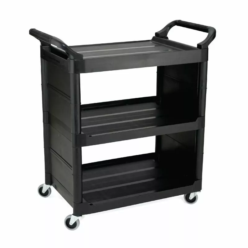 Rubbermaid light duty service utility cart is all polypropylene construction – will not rust, dent or chip.