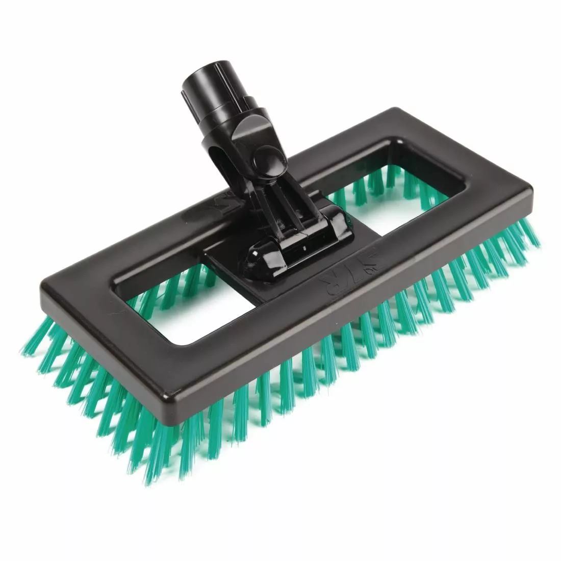 Deck scrubber with tough polypropylene base and stiff bristles.