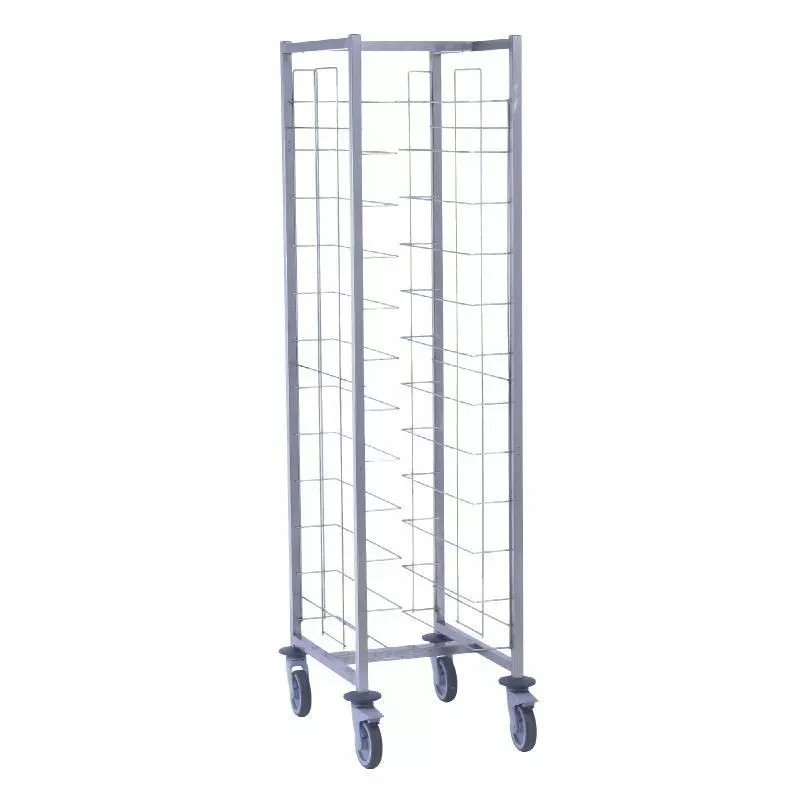 Perfect for use in schools, canteens, bakeries and hospitals, this premium quality self clearing trolley will allow you to transport large amounts of items with ease. Featuring twelve levels, the stainless steel welded construction is incredibly robust. The four swivel wheels make heavy loads easy to manoeuvre and the brakes ensure the trolley is secure when not in transit.